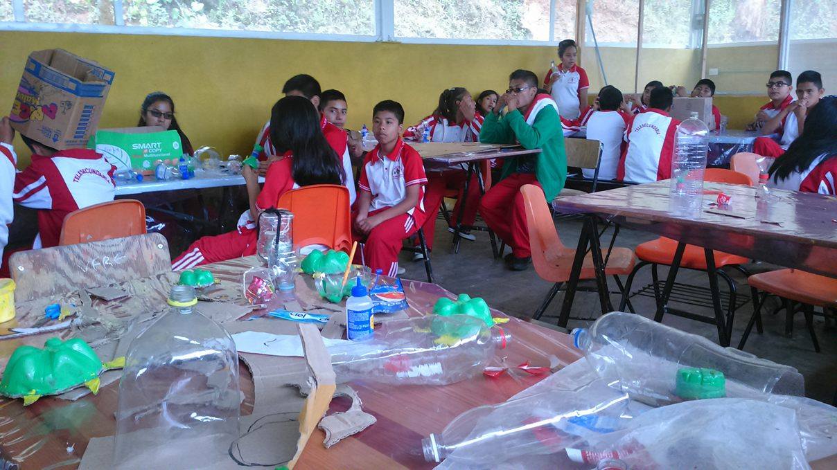 Después de la exposición los alumnos pasaron a la siguente fase la cuál consistía en reciclar botellas de "PET", ellos relizaron manualidades que son muy útiles en el hogar.